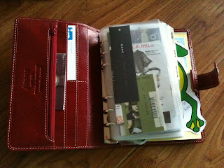 My second Filofax is the gorgeous Crimson Malden. This is a recent bargain purchase courtesy of the fantastic City Organiser site. This is my personal Catch All planner where Everything gets listed and recorded. And is big enough to write copious amounts of lists in - for example with Isle of Wight and Glastonbury festivals coming up I've got shopping lists, packing lists, must see lists and remember lists coming out of my ears!! These lists make using my Pocket Deco at the moment just a little too small for me.